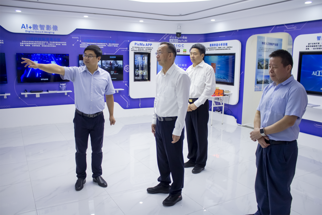 调研期间,李德金副主任一行走进帝视科技展厅,听取企业关于科技创新工作的情况汇报。董事长高钦泉博士围绕“AI+数智影像”、“AI+智能制造”两大核心方向,详细介绍了公司在人工智能影像大模型、工业检测与工业机器人等领域的科研布局与产业化进展。
